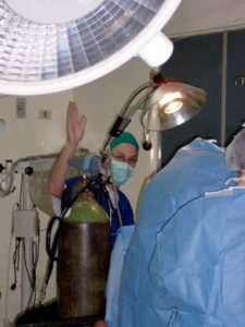 “We took apart the anesthesia machine and I built it back into [the semblance of] an ice chest,” he explains. “I could take that on the plane and reassemble the anesthesia machine once I got it over there. Because to try to ship one there is prohibitive—it would have been confiscated … I took an ice chest, a suitcase of parts, and had all my clothes for the week rolled up in a backpack.”
