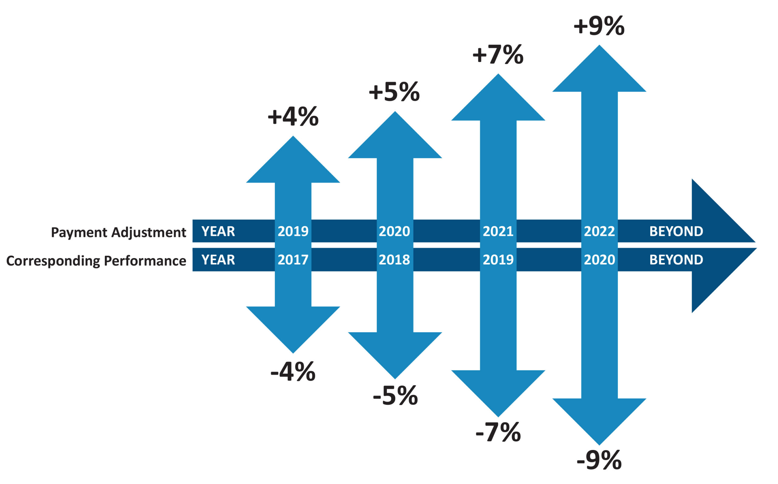 Payment adjustments also increased. In 2017, providers could earn a positive or negative adjustment up to 4%, which increased to +/- 5% in 2018. This is expected to increase year-after-year.