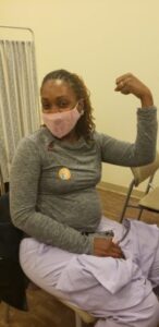 She knows she speaks toward a skeptical group as she continues, “I am a Black female physician; I know our community is hesitant because of things that have happened in the past. But, I’ve gotten it. I trust medicine. We’re the most vulnerable population. We should get those vaccinations in our arms as soon as we can. I want to encourage all people from all communities, but especially Black and Brown communities, to get vaccinated, to take care of ourselves, and to take care of others.”