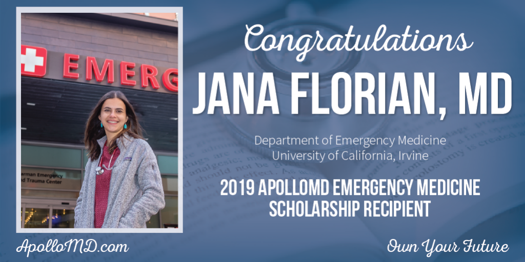 ATLANTA, Ga. (July 10, 2019) – ApolloMD, a multispecialty physician, APC and practice management services group, is honored to announce the recipient of the second annual ApolloMD Emergency Medicine Scholarship, Jana Florian, MD.