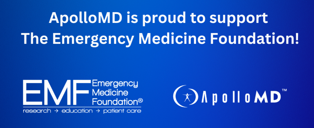 ATLANTA, September 20, 2024 – ApolloMD, a leading provider of physician services across the United States, has announced a $5000 donation from clinicians to the Emergency Medicine Foundation (EMF). The contribution will support EMF’s mission to advance emergency medicine research and education.