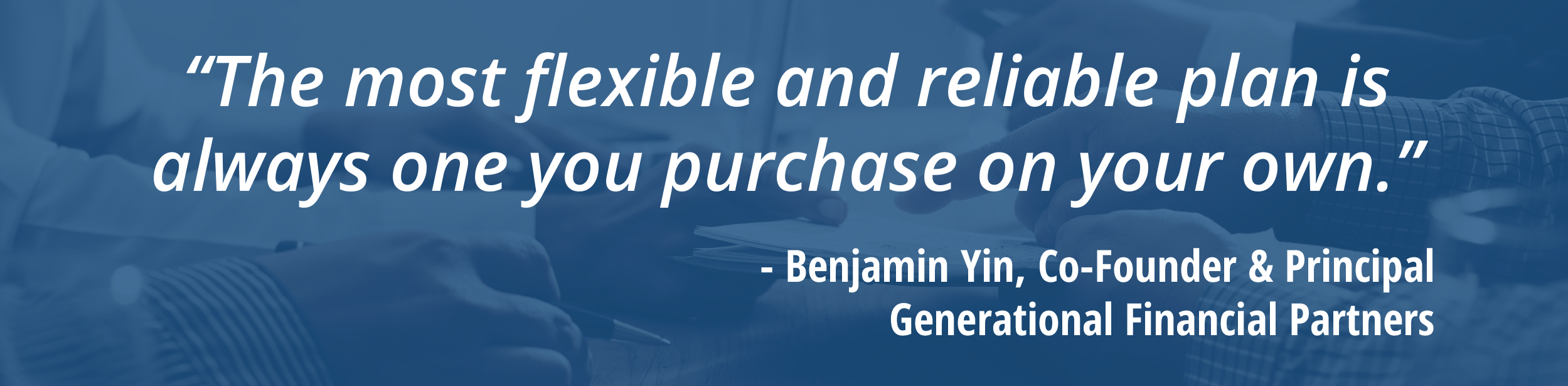 Schedule a free 15-minute call with trusted partner and financial advisor, Benjamin Yin, Owner of Generational Financial Partners LLC, to further discuss the importance of long-term disability and how to customize your policy as an independent contractor physician.