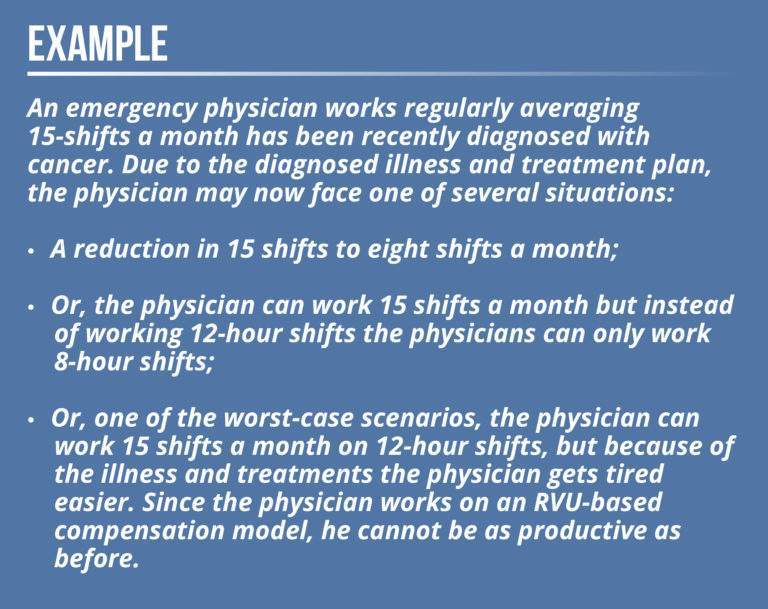 However, as stated in the worst-case scenario, the physician did not lose time or duty but instead experienced a loss of productivity. As a result, the physician cannot see as many patients as before and is making 15-20% less income. This scenario can be more difficult to prove if it is not mentioned when purchasing a plan. In all three scenarios, the best policy will pay a benefit in the event of a claim. As always, the strongest definition will be the most expensive.