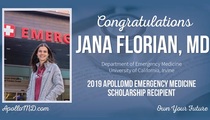 ATLANTA, Ga. (July 10, 2019) – ApolloMD, a multispecialty physician, APC and practice management services group, is honored to announce the recipient of the second annual ApolloMD Emergency Medicine Scholarship, Jana Florian, MD.